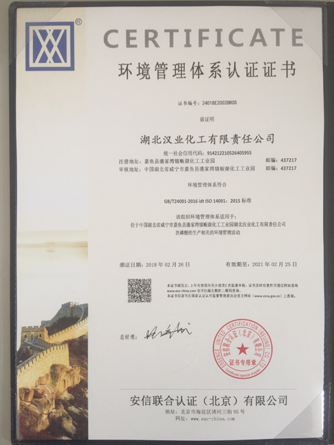 環(huán)境管理體系認證證書
